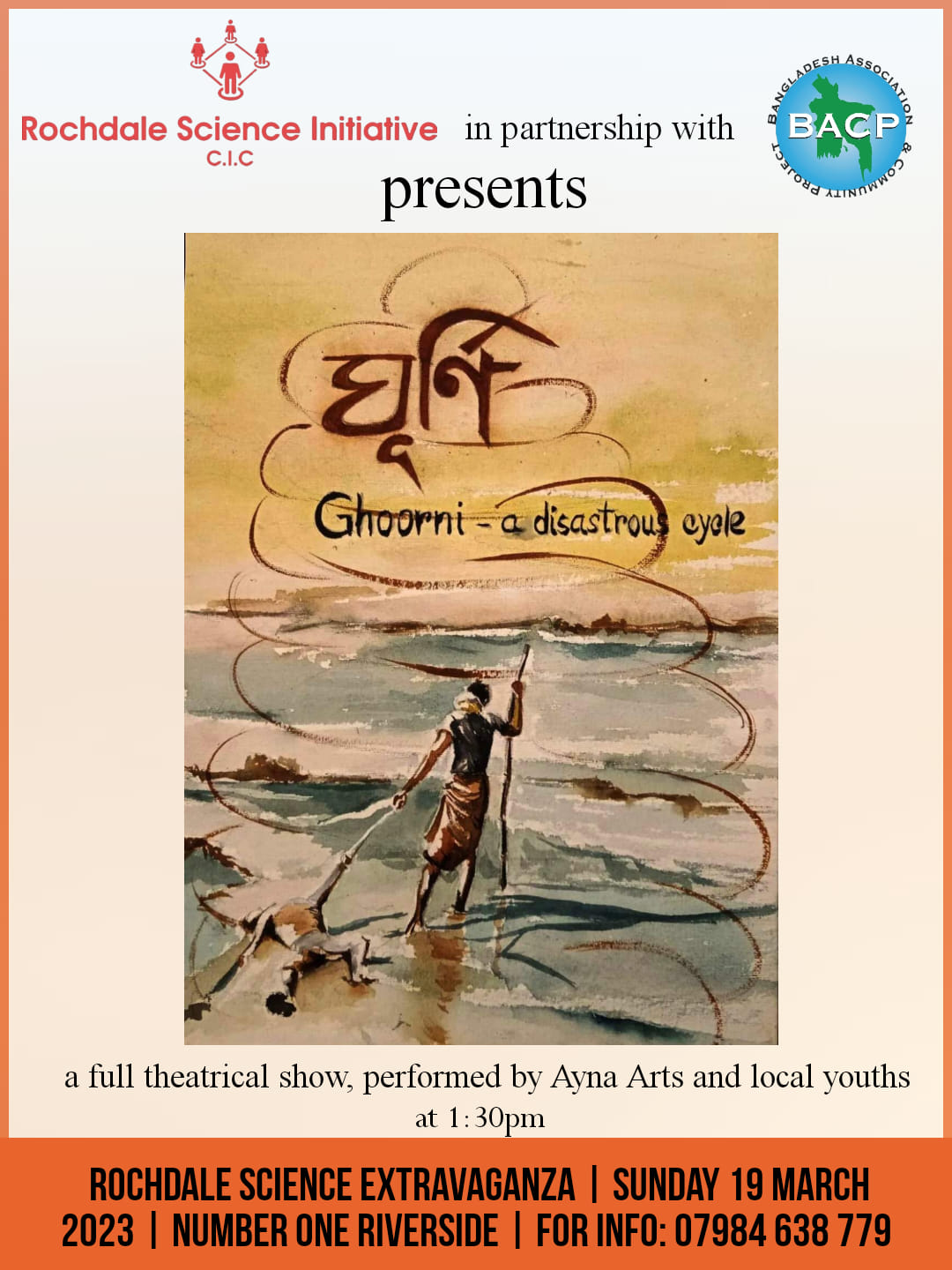 Following the success in Rochdale, Better We invited a second round of climate workshops. This time, youth club members were involved in a full performance of Ghoorni. The children, playing adult roles, found the rehearsal process transformative. Many had known each other in passing but had never worked closely before. Through collaborative performance, they developed friendships and confidence. The play was performed on 8 May 2023 as part of Bangla New Year celebrations, showcasing their creativity and climate awareness.