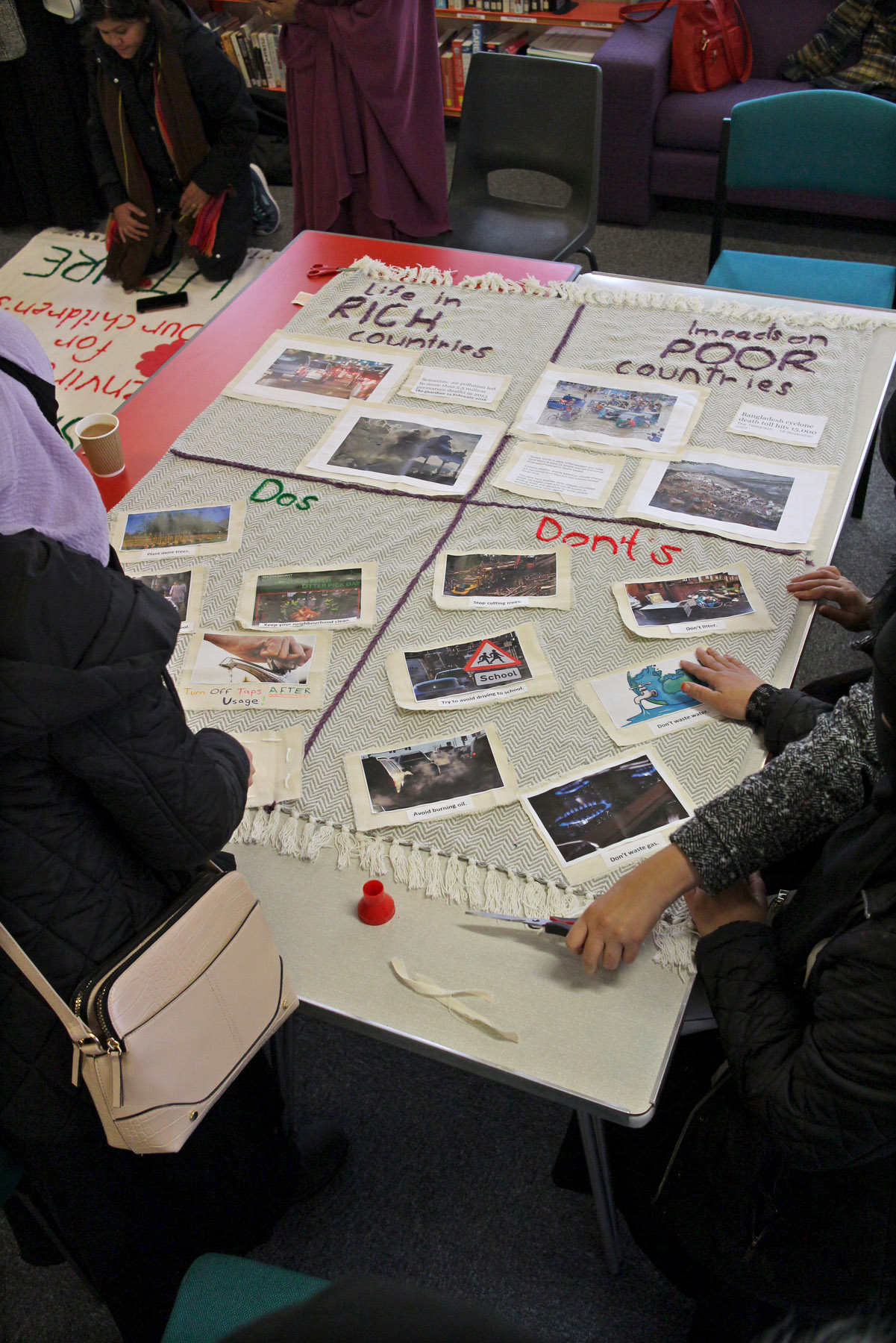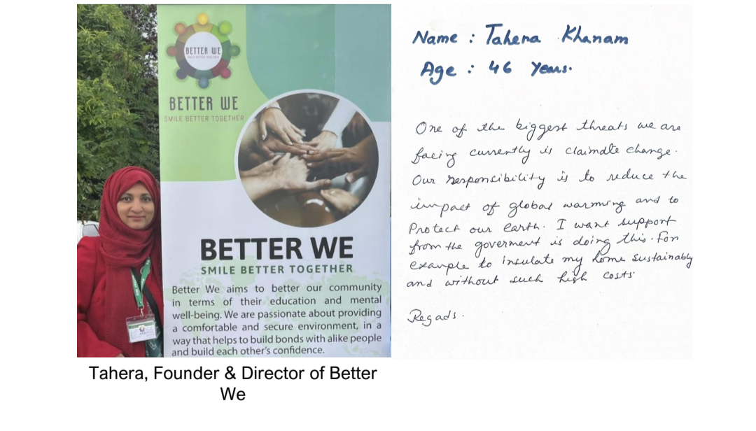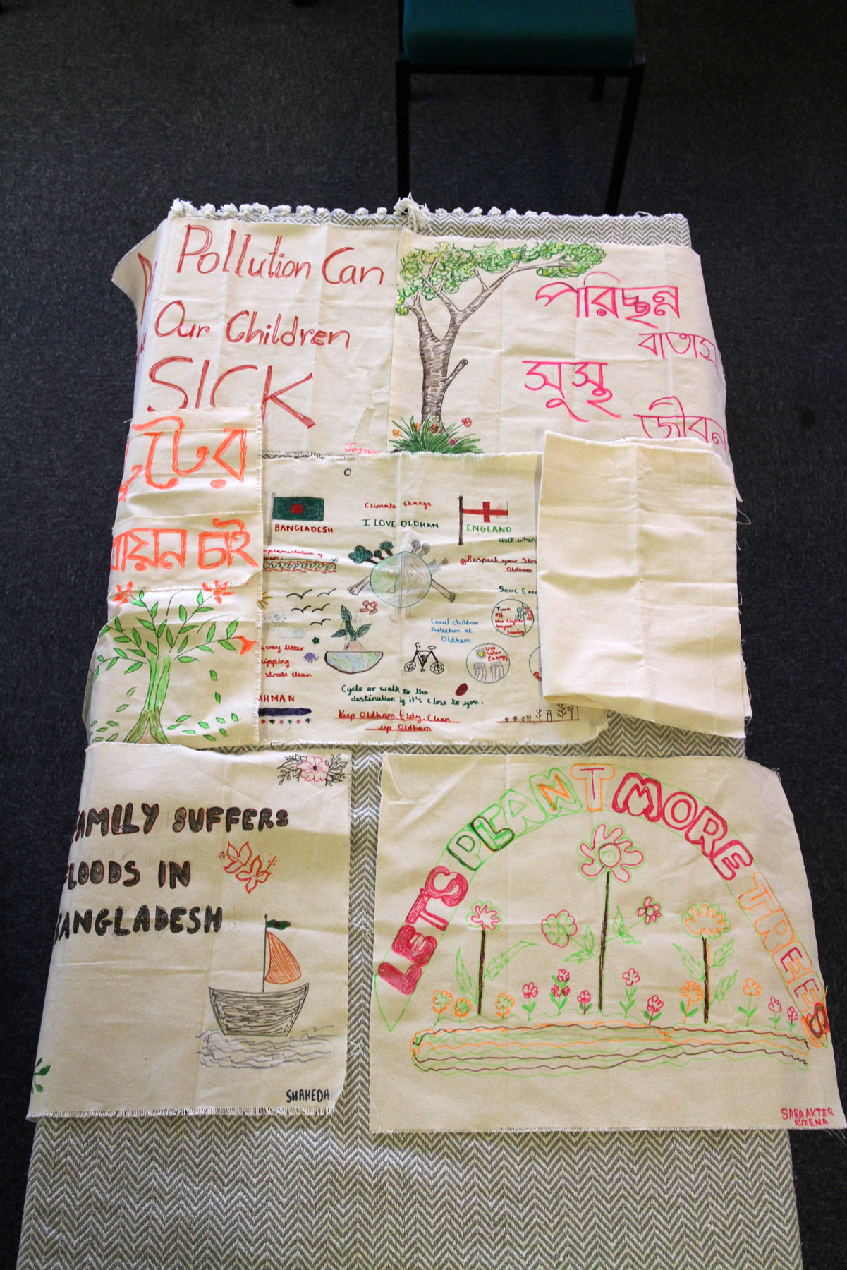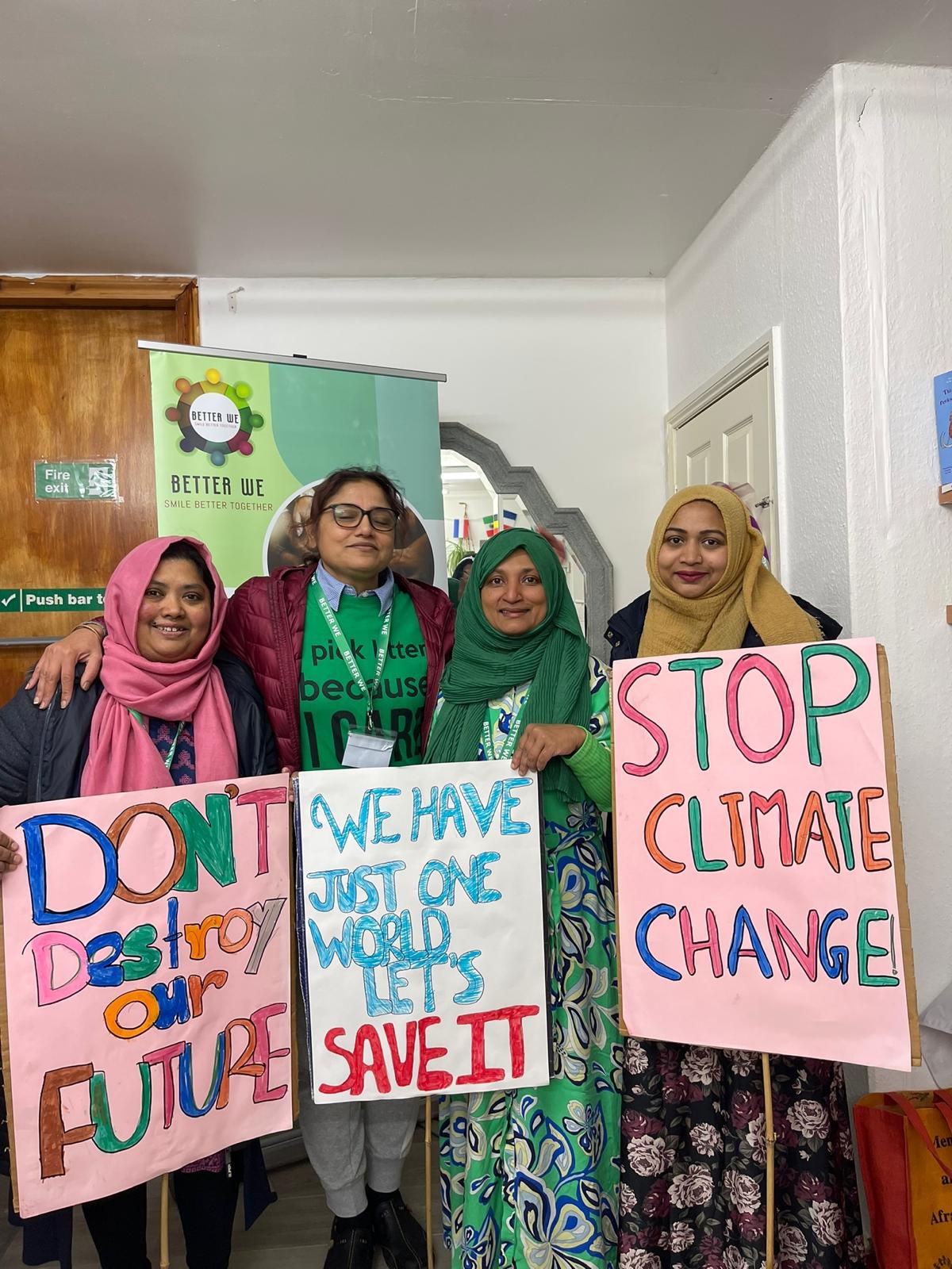 This five-week workshop brought together women in Oldham to explore climate change and its impacts. Participants—many of whom had very little exposure to life outside home or prior knowledge of the topic —shared views, learned about climate injustice, and reflected on their roles in global challenges. They recalled early school lessons on weather but were surprised by the severity of current climate issues and wrote a letter together to the local councillor about changes they would like to see in their local areas. Using skills in sewing, gardening, and crafting, they created powerful textile art and posters displayed at Northmoor Library under the title A Future for Our Children. Despite cultural reservations, the group even composed and sang a Bangla parody song about climate action. One participant remarked, “I used to be happy about warm winters—now I know the cost.” The workshop became a space for learning, expression, and sisterhood.