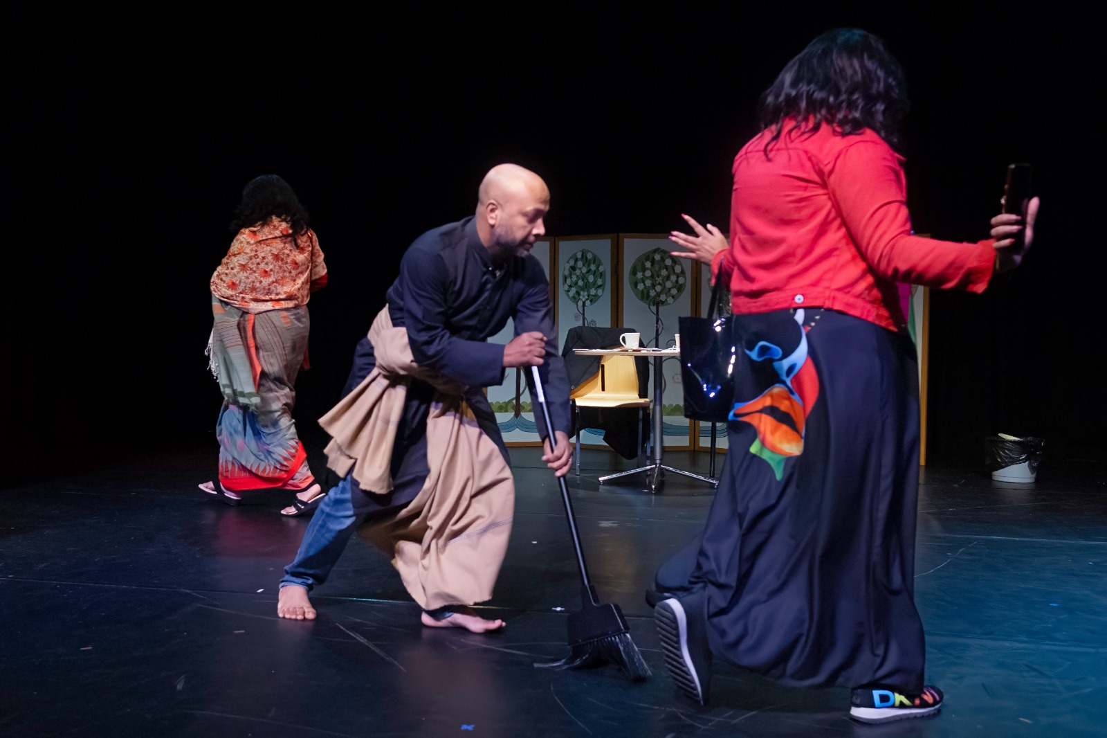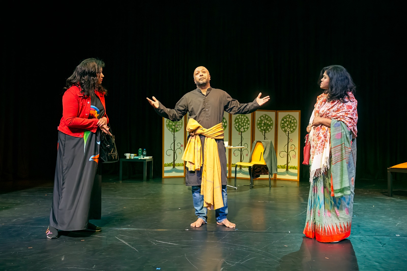 Synopsis: Set in post-lockdown UK, ‘Extramarital’- 60% of which is in English- is a light-hearted play within a play. The story follows the extramarital affairs of two couples who take the love and strength in their relationships for granted and, being bored, search for excitement and pleasure elsewhere. As rehearsals for the play descend into chaos, the audience is entertained with classic slap-stick comedy, whilst also getting a glimpse of the ‘back-stage’ drama. As the play progresses, the parallels between the actors’ on stage and off-stage lives become clearer and the line between reality and fiction get blurred. The story starts with Zaman and Arefin- two colleagues in the inside play- talking about their lockdown experiences and Zaman telling Arefin about his extramarital love affair. The middle of the play shows how being inspired by Zaman’s stories, Arefin also starts having an extramarital affair and how their children Shajeeb and Joya are distressed by their parents’ unhappy marriages. The ‘play within the play’ ends in the two couples being exposed and it is revealed that they are actually having affairs with each other’s wives.